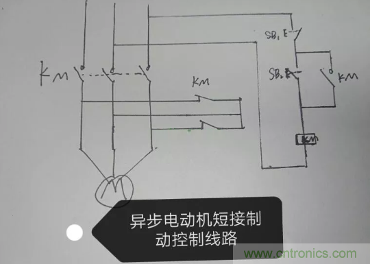這種電路一般出現制動問題,大多都是由于頻繁啟停導致剎車系統問題,而所謂的剎車系統就一交流接觸器,結合電路圖不難看出,當交流接觸器常閉觸點出現問題,剎車系統就出問題了。diangon.com在電源斷開時,電機在慣性作用下轉子不會立刻停下來,而且轉子存在剩磁,斷電時KM兩副常閉觸點將電動機定子繞組短接,而轉子的慣性旋轉磁場切割定子閉合的繞組后,電機內部就形成一種反向制動力,從而達到制動目的。