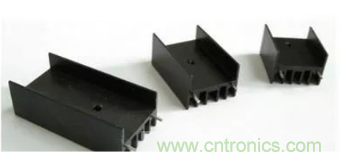 在實際使用過程中,用戶常常在穩壓源上附加散熱片,以避免穩壓源長時間工作在大負載下,散熱條件不足,從而造成過高的溫升而損壞元器件和電路板,圖F1-17所示為常用的散熱片。