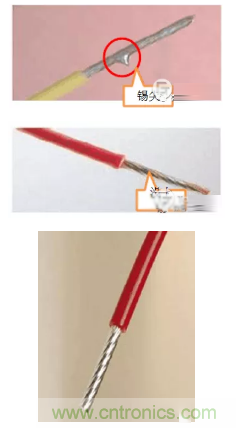 浸錫就是將金屬表面沾上一層錫,防止氧化,方便焊接。時至今日,浸錫在連接器行業(yè)中仍是廣泛應(yīng)用,浸錫的好壞直接影響到產(chǎn)品的性能及使用壽命。我們都知道導(dǎo)體的電阻在電流的作用下會發(fā)熱,電流越大發(fā)熱量也就越高,浸錫工藝可以將一根一根細導(dǎo)線間的空氣用錫填滿從而減少發(fā)熱量。同時由于多股導(dǎo)線容易散,直接壓在接線端子上時,接觸面積會減少,所以很多廠家選擇浸錫的方式,以免接觸不良發(fā)熱燒壞。浸錫標準比較嚴格,需均勻,平滑,厚度0.05~0.1mm,不能有錫尖,凸錫球,漏錫,堆疊,變形等情況發(fā)生,否則反而會加大接觸電阻,增加發(fā)熱量。