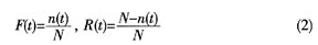 產品在一定時間內的可靠度和累積失效概率可以通過大量試驗來確定。例如取N個產品進行試驗,若在規定時間內有n個失效,則: