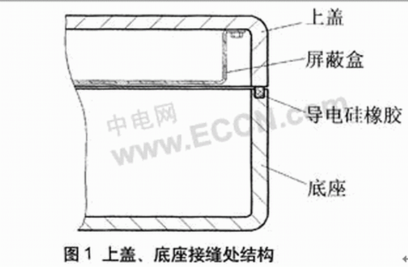 整機結構由上蓋和底座兩部分組成,如果僅靠上蓋與底座直接接觸,接縫處的接觸很難連續,屏蔽效能大受影響。為保證接縫的連續密封性,可加裝帶導電微粒的硅橡膠密封條。