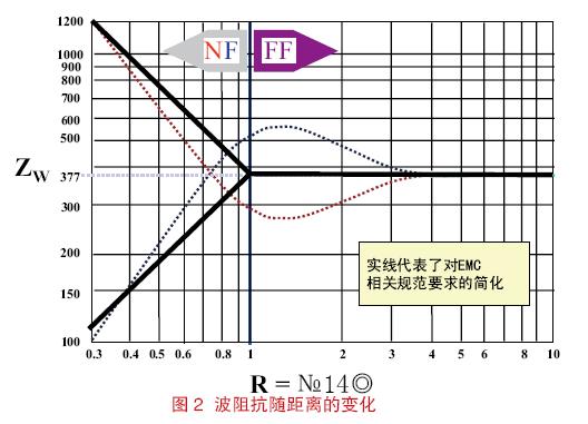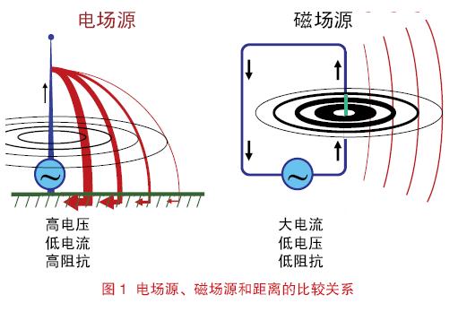 在靠近源的區(qū)域,電場和磁場的關(guān)系非常復(fù)雜;盡管既有電場又有磁場,但該區(qū)域要么基本體現(xiàn)為電場要么基本體現(xiàn)為磁場。在遠(yuǎn)離源的區(qū)域,電場和磁場的關(guān)系變得穩(wěn)定了,即E/H=120π。電場和磁場的這種關(guān)系如圖2 所示。EMC從業(yè)者通常采用簡化和近似的距離,即R=λ/2π,并認(rèn)為場在該處出現(xiàn)從近場到遠(yuǎn)場轉(zhuǎn)變。這個(gè)公式的前提假設(shè)是源結(jié)構(gòu)的尺寸小于半個(gè)波長。天線的設(shè)計(jì)者們所尋求的更加精確的表達(dá)式可能會(huì)成為上述觀點(diǎn)的一個(gè)例外情況。[page]