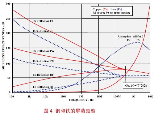 發(fā)射和敏感度問題的頻率低于100kHz 就意味著這是一個(gè)磁場(HF)耦合問題。在這種情況下,屏蔽效能主要取決于殼體材料的類型。不管材料如何選擇,首先必須決定最高頻率情況下對(duì)屏蔽效能(SE)的要求,然后加上適當(dāng)?shù)碾姶偶嫒菰A俊?br /> 然后,假設(shè)使用的是一種便宜的導(dǎo)磁材料,通過令其吸收損耗(A)= SE+EMCSM 來計(jì)算其所需的厚度(t)。