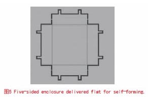 當測試后才進行腔體安裝,或PCB板的產量很大時,選擇五面腔體更節省成本。這種選擇能通過焊接管腳,點焊角或對焊角實現,也可通過熱回流孔完成加工安裝。迄今為止開發五面腔體和進行少量生產最省錢的方法是選用曲線加工五面腔體。如圖5所示,它是通過在平板上加標識完成。當將它們安裝在PCB板上時,用戶只需將其折疊成想要的形狀即可。