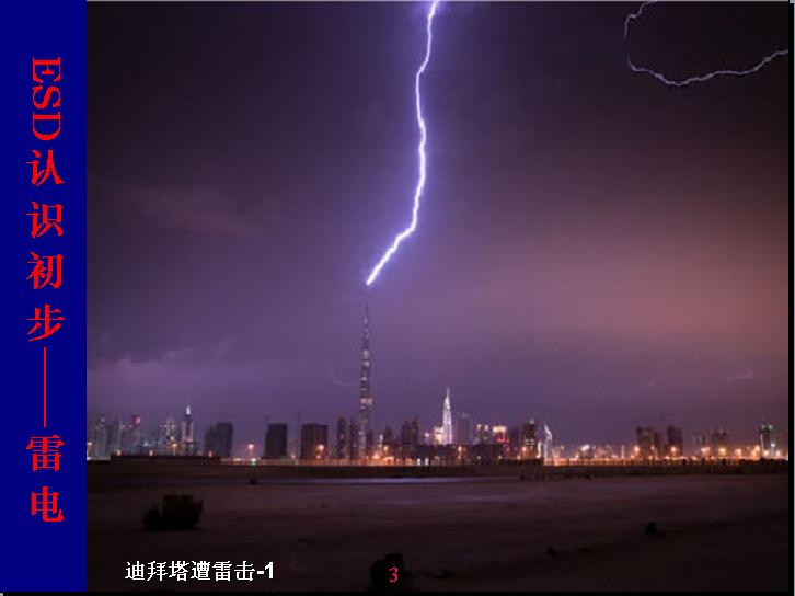 先初步認識一下什么是雷電。這是迪拜的世界上最高的塔遭雷劈所拍的照片,這個塔是800多米,是全世界最高的塔。按照這個距離量下去就知道它的路線有多少米。雷電就是靜電放電的過程。這也是迪拜塔受雷擊所拍的照片,這是一個鄉(xiāng)村遭雷擊的照片,這是樹林、山林遭雷擊的照片,這是大巴遭雷擊的照片,所以大家就知道了雷電有多么厲害。前兩天黑龍江和內(nèi)蒙古的大興安嶺、小興安嶺發(fā)生火災也是因為雷電產(chǎn)生的。這是遭雷電劈的電視機,這是遭雷電擊壞的電腦設備,每年我們國家大概都有幾百萬臺電子設備遭雷擊損壞。