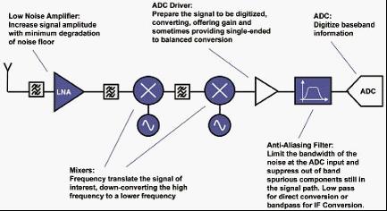 那么,什么樣的設計是一個較好的射頻系統設計呢?首先,信號靈敏度要高,這意味著較低的噪聲,時鐘引入的相位噪聲同樣要低。輸入信號要有足夠的驅動能力,相關的指標,如高的三階截點和1dB壓縮點。然后就是各個模塊的性能是否足夠好,是否能較好的區分信號和噪聲,線性度是否足夠好等等。另外呢就是低功耗低成本等方面的考慮了。
