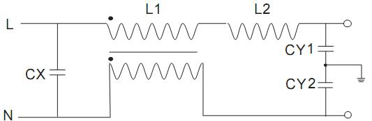 圖1是開關電源常用的一級EMI 濾波器的電路。圖中的L1為共模扼流圈,Cx、CY1、CY2為安規(guī)電容,對于小型開關電源來講,由于體積的限制,很多時候會將CY1、CY2會省略掉的,甚至連L1也會省去。圖中 共模扼流圈L1的兩個線圈匝數(shù)相等,方向相同,這兩個電感對于差模電流和主電流所產(chǎn)生的磁通是方向相反、互相抵消的,因而不起作用;而對于共模干擾信號,兩線圈產(chǎn)生的磁通方向相同,有相互加強的作用,每一線圈電感值為單獨存在時的兩倍,從而得到一個高阻抗,起到良好的抑制作用。共模電感兩邊感量不相等形成的差模電感L2一起與Cx電容組成一個低通濾波器,用來抑制電源線上存在的差模干擾信號。CY1與CY2的存在是給共模噪聲提供旁路,同時與共模電感一起,組成LC低通濾波器。共模噪聲的衰減在低頻時主要由電感起作用,而在高頻時大部分由電容CY1及CY2起作用。同時,在安裝與布線時應當注意:濾波器應盡量靠近設備入口處安裝, 并且濾波器的輸入和輸出線必須分開,防止輸入端與輸出端線路相互耦合,降低濾波特性。濾波器中電容器導線應盡量短,以防止感抗與容抗在某頻率上形成諧振。