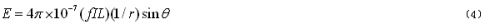 因為差模電流流過導線環(huán)路時,將引起差模輻射如式(3)表示: