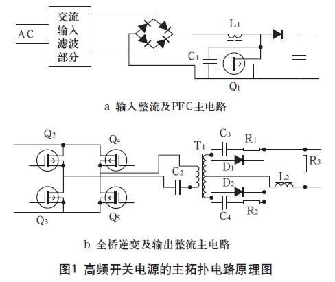高頻開(kāi)關(guān)電源的主拓?fù)潆娐吩恚鐖D1所示。