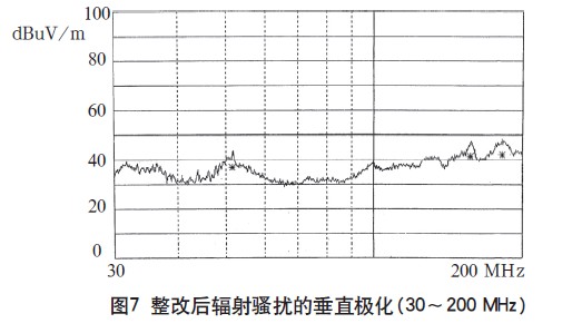 由測(cè)試結(jié)果可以看出,通過(guò)電磁兼容設(shè)計(jì)在傳導(dǎo)騷擾抑制方面取得了良好效果,在高頻段輻射騷擾的設(shè)計(jì)也達(dá)到了預(yù)期效果,下面還需對(duì)在30~200MHz頻段范圍內(nèi)的輻射騷擾進(jìn)行改進(jìn)設(shè)計(jì)。
