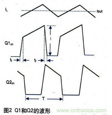 當Q1關斷、Q2導通時,就形成了第二個回路。之后存儲在L1內的能量流經輸出電容器和Q2,如圖5所示。這些回路面積控制對于降低電磁干擾是很重要的,在PCB走線布線時就要預先考慮清器件的布局問題。當然,回路面積能做到多小也是有實際限制的。