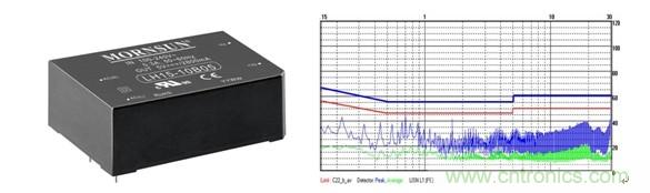 上圖為MORNSUN電源LH15-10B05的電源應用到某品牌產品上面后,整機測試傳導騷擾結果,此結果無法符合EN55022/CISPR22的CLASS B要求,甚至連CLASS A都無法滿足要求,更不用說設計余量。