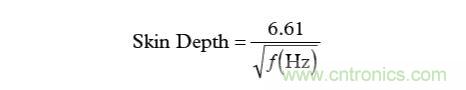 在高頻段,必須考慮一種稱為“趨膚效應”的現象。趨膚效應會引起電流流向導線的外表面--結果會使得導線的橫截面變窄,因此使直流(DC)電阻增大。雖然趨膚效應超出了本文討論的范圍,這里還是給出銅線中趨膚深度(SkinDepth)的一個很好的近似公式(以cm為單位):
