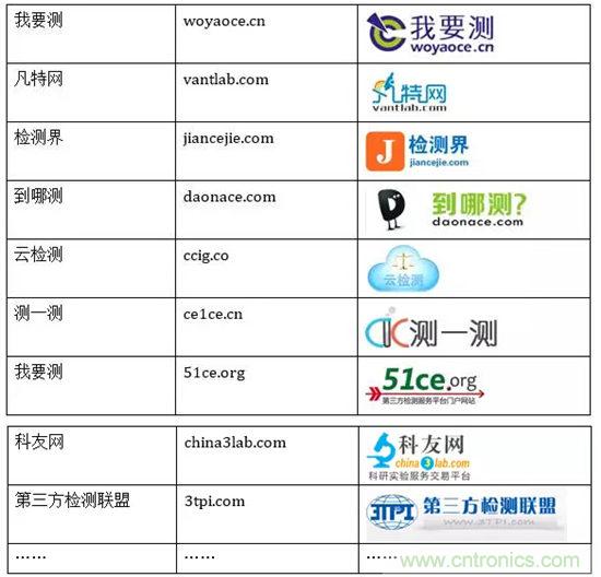 我要測(woyaoce.cn)、凡特網(wǎng)(vantlab.com)、檢測界(jiancejie.com)、到哪測(daonace.com)、云檢測(ccig.co)、測一測(ce1ce.cn)、我要測(51ce.org)、科友網(wǎng)(china3lab.com)、第三方檢測聯(lián)盟(3tpi.com)……