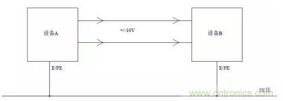 如下圖所示,如果兩個設備的零電位沒有很好的連接,即使設備A輸出的電壓信號是穩定的,當設備B的輸入端接收到時也會變為不穩定的。