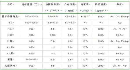 表3一些公司的低溫共燒介質(zhì)材料性能
