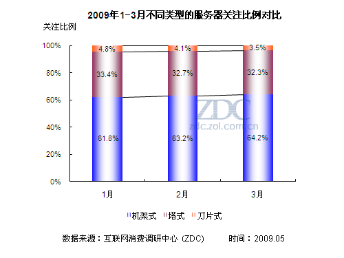 (圖)2009年1-3月不同類型的服務(wù)器關(guān)注比例對比