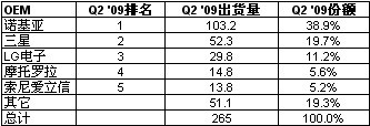 下圖所示為iSuppli公司對于第二季度五大手機OEM廠商出貨量排名的初步估計。