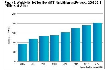 - 預計2008至2013年,高端機頂盒出貨量的復合年增長率將達22.8%