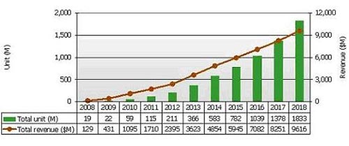 • E-Paper面板產值將由2009年的4億美元成長到2015年的60億美元;并將在2018年接近百億美元