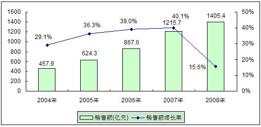 2008年市場增速跌入近幾年低谷