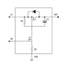 電壓上升的斜率有幾種:由工廠設定幾種斜率(啟動時間不同),供用戶選擇;由用戶在器件外設一電容,設定其啟動時間。為了快速關斷開關,在負載開關中設有關斷時輸出有放電電路,如圖5所示。在負載開關關斷時,N-MOSFET導通,電容往N管放電,加速關斷時間。