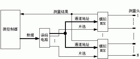 由圖2可見,若以VA作為測量的電壓量,理論上當VA=0時應為通路,VA>0時應為斷路,且VA的值隨兩測量通道之間的電阻值的不同而變化。但由于模擬多路開關本身有不可忽略的導通電阻RON,這樣,在測量通路形成后,若為通路,VA并不等于0,而是等于RON上的電壓降。由于測量的目的只是獲知通/斷路關系,沒有必要去測量VA的具體值,為此只需用電壓比較器比較VA是否大于RON上的電壓降即可。設置電壓比較器的閾值電壓等于RON上的電壓降,電壓比較器的輸出就是測量結果,該結果為可直接由微控制器讀取的數(shù)字量。