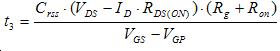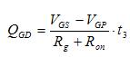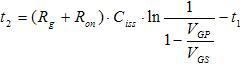 VGS電壓從0增加到開啟閾值電壓VTH前,漏極沒有電流流過,時間t1為: