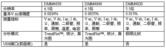 DMM系列提供了多種型號,可以滿足您的需求和預算。下列萬用表提供了2x4線電阻測量功能。