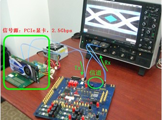 1. 實測RX端波形:如圖2所示,用示波器直接測量2.5Gbps的PCIe信號通過24英寸傳輸線后的接收端波形,示波器的兩個通道都設置為50歐,即模擬差分100歐的負載。在三種情況對比中以此測試結果作為參考。