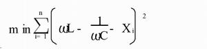 取Z的虛部(電抗)X,運用實驗數據處理中的最小二乘法并由(1)式知,X的擬合模型為?L-1/?C。通過一系列頻點?i的測試計算數據Xi(i=1,2,.,n),尋找最優的參數L和C使得: