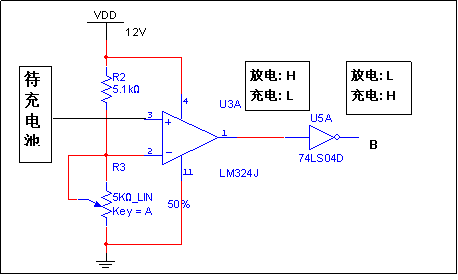 ①運(yùn)用電壓比較器監(jiān)測(cè)電池電壓,保證至充電終止電壓時(shí),能及時(shí)關(guān)斷充電電流并鎖定“充電結(jié)束”狀態(tài)。