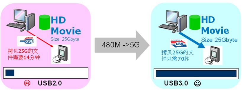 圖1:USB2.0與USB3.0的速度對比