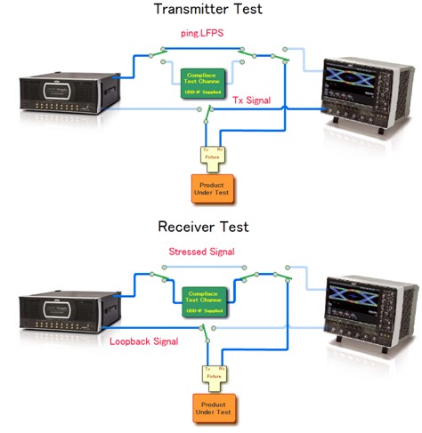 由于USB3.0的速率高達5Gbps,在USB3.0規(guī)范中接收機測試成為必測項目。接收機測試包括了誤碼和抖動容限測試兩部分。