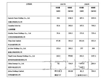 有人說,中國結晶型太陽能電池面板(單元及模塊)的廠商已經超過了80家。其中8家已在國外的股票市場上市,并公開了營業數據等。由這些中國大型太陽能電池面板廠商的產量、供貨量及銷售額走勢,即可得知上述全球經濟危機的影響,以及之后的快速復蘇情況。