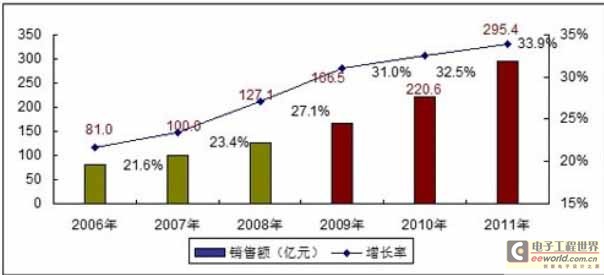 圖1 2006-2011年中國便攜醫療電子市場規模與預測