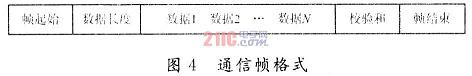 單片機與PC端的數據通信需要設計一個通信協議,采用同步通信方式進行。將通信協議分成命令幀、應答幀和數據幀三種格式。每種幀都包含有起始字節、數據長度、校驗字節和幀結束字節。具體格式如圖4所示。