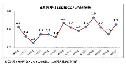 圖4 6月份各尺寸LED與CCFL價格倍數關系 [page]