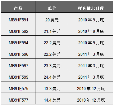 富士通半導體還同時宣布未來針對段顯示儀表板,即將推出2款MB91570系列的微控制器產(chǎn)品。該產(chǎn)品將于2010年12月底上市。