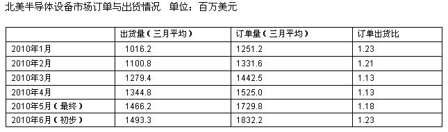 與此同時,2010年7月份北美半導體設備制造商出貨額為14.9億美元,較6月份14.7億美元的最終額增長1.8%,較2009年7月份5.38億美元的最終額增長177.6%。
