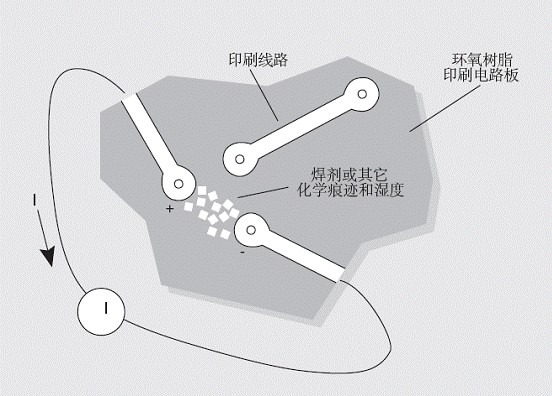 高濕度和離子污染能夠大大降低絕緣電阻。在發(fā)生結(jié)露或水吸收的情況時,就會出現(xiàn)高濕度,而離子污染則可能由人體的油脂、鹽分和焊劑等產(chǎn)生。