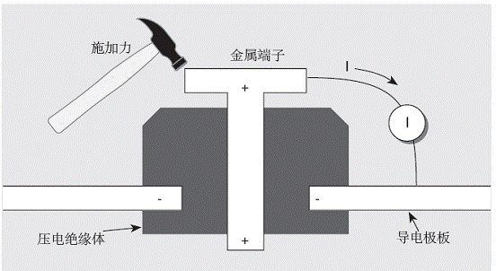 某些晶體材料用作絕緣端子和連結(jié)件時,若向其施加機械應(yīng)力,就會產(chǎn)生壓電電流。在某些塑料中,電荷的儲存使該材料的性質(zhì)類似于壓電材料。壓電絕緣體的端子示于圖1。