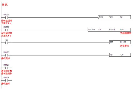 3.2.3通訊程序:臺達SS PLC提供兩個通訊口。本文中,SS PLC的COM1口已與觸摸屏通訊,所以利用SS PLC的COM2 通訊口(此通訊口接口是RS485),支持MODBUS通訊便利指令,編通訊程序像編順序邏輯程序一樣簡單,讓對通訊底層不是很了解的人也能快速上手??焖倬帉慚ODBUS通訊程序,控制如臺達全系列產品,如變頻器、溫控器、伺服等產品。見圖10。
