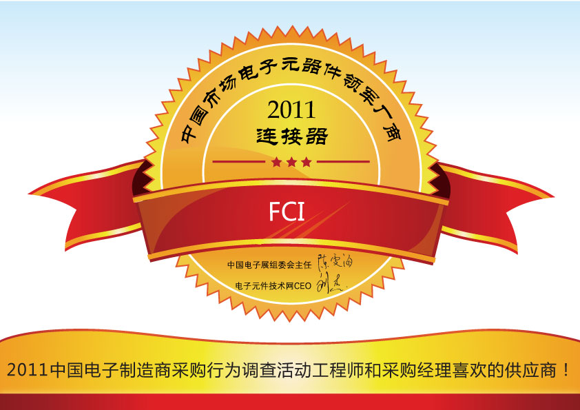 在近日剛剛結束的2011中國電子制造商采購行為調查暨中國市場電子元器件領軍廠商的評選活動中,FCI憑借持續穩定的產品、技術和服務等多方面優勢,以及在工程師心目中形成的良好形象,一舉榮獲2011中國市場電子元器件(連接器類)領軍廠商稱號!