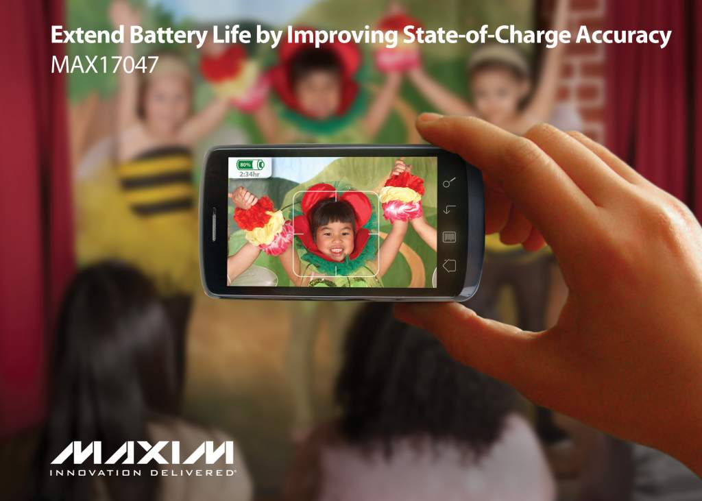 Maxim Integrated Products, Inc 推出用于單節Li+電池組的電量計MAX17047。MAX17047采用公司最新的ModelGauge™ m3算法,是業內唯一一款避免了傳統庫侖計算法中突變修正的庫侖電量計。與其它庫侖計相比,該ModelGauge m3 IC使用的檢流電阻更小、外部元件更少,有效節省了空間和成本。該款IC可理想用于單節和多節Li+電池的電量計算,適用于各種便攜式應用(包括:無線手機、智能電話、平板電腦、電子書、便攜式游戲機、數碼相機、金融終端、便攜式導航設備以及便攜式醫療器械)。