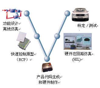 汽車電子產(chǎn)品軟件開發(fā)流程是“V”形開發(fā)流程。“V”形開發(fā)流程分為五個階段,即功能設(shè)計、原型仿真、代碼生成、硬件在回路仿真-HIL、標(biāo)定。