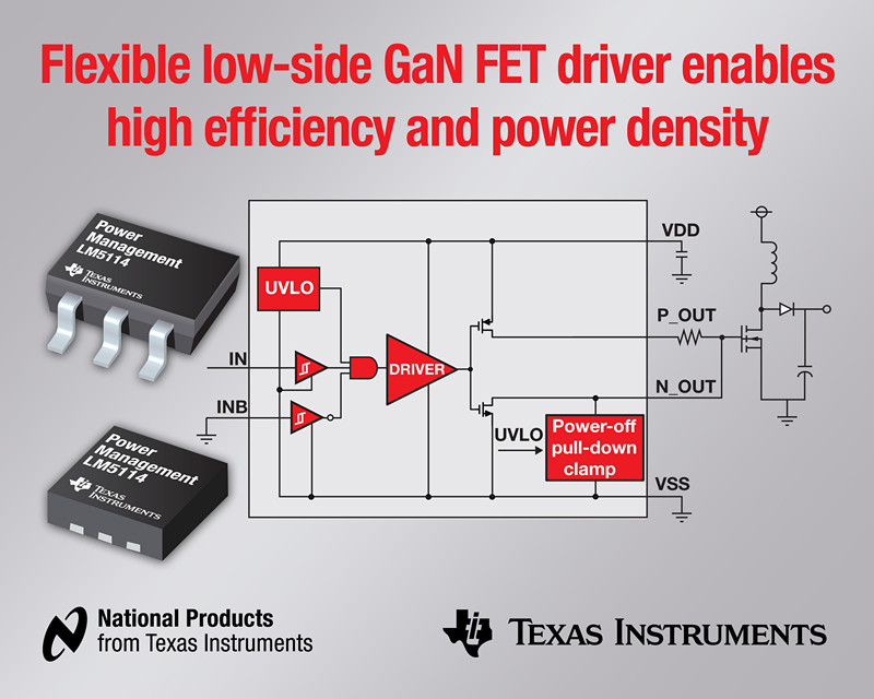 日前,德州儀器 (TI) 宣布推出用于配合高密度電源轉(zhuǎn)換器中 MOSFET 與氮化鎵 (GaN) 功率場效應晶體管 (FET) 使用的低側(cè)柵極驅(qū)動器。LM5114 可驅(qū)動同步整流器與功率因數(shù)轉(zhuǎn)換器等低側(cè)應用中的 GaN FET 與 MOSFET。該系列加上 2011 年推出的業(yè)界首款 100 V 半橋 GaN FET 驅(qū)動器 LM5113,可為高性能電信、網(wǎng)絡以及數(shù)據(jù)中心應用中使用的大功率 GaN FET 與 MOSFET 提供完整的隔離式 DC/DC 轉(zhuǎn)換驅(qū)動器解決方案。