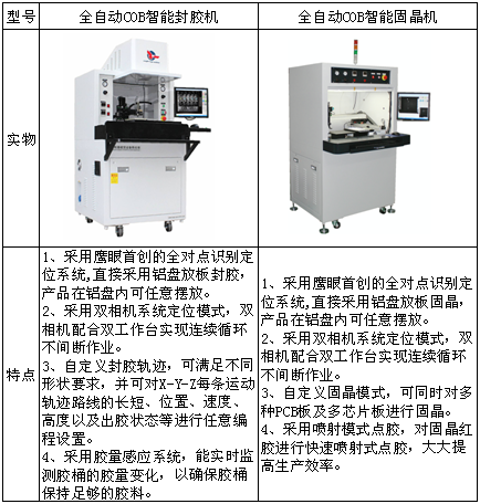 專注于COB行業發展,深圳市鷹眼在線電子科技有限公司專為 COB 研制出創新型智能封膠設備和智能固晶設備,該發明為COB行業的封膠工藝及固晶工藝帶來了革命性的突破,有效節約生產成本。Eagle COB智能封膠機系列的發明填補了市場空白,飛躍性的提高了產能和品質;Eagle COB智能固晶機系列巧妙地將光學識別技術與自動化結合起來,全面采用了自動化機械設備,因此大大提高了設備的自動化及智能化程度,進而能夠靈活適應各種生產模式,有效提高了生產效率以及產品合格率。