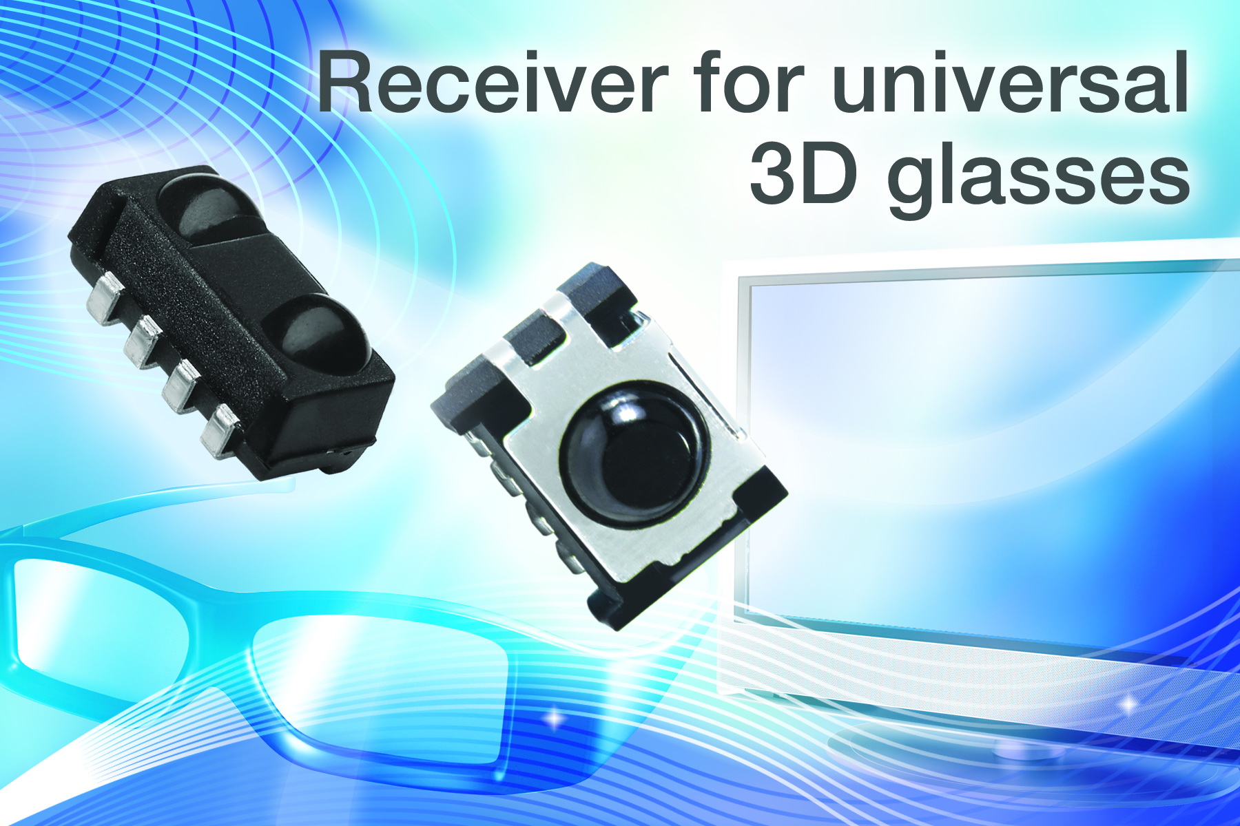 現在市場上出售的大多數液晶3D電視都在使用快門式眼鏡,將左眼和右眼的圖像分開。盡管人們做了很多努力,試圖將用來同步3D電視與相應的主動快門式眼鏡的技術實現標準化,但業界離這個目標還相當遙遠,各個制造商提出了大量互不兼容的紅外和射頻協議。標準的缺失催生了“通用3D電視機眼鏡”市場,這種眼鏡能夠與任何使用主動眼鏡技術的3D電視配合工作。新的TSMP6000和TSMP77000是表面貼裝紅外接收器,可接收任何用于3D電視同步的紅外信號,簡化了通用3D電視眼鏡的設計工作。