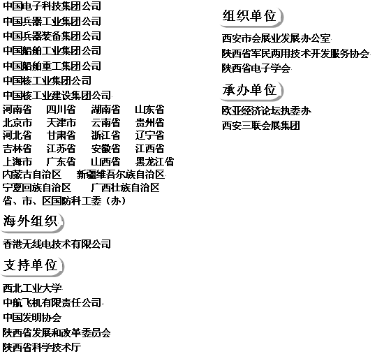 中航一集團621所、中航二集團直升機部、航天二院23所、仿真中心、706所、航天三院總體部、31所、33所、35所、8357所、8511所、蘭州軍區、總后駐西安軍代局、總裝駐西安軍代局、海軍駐西安軍代局、空軍駐西安軍代局、酒泉衛星發射中心、華陰常規兵器試驗基地、第26試驗訓練基地(63750部隊)、第32試驗訓練基地(63870部隊)、西安衛星測量控制中心、63672部隊、68306部隊、94162部隊、61363部隊、95956部隊、68054部、68126部隊、61540部隊、聯勤第28分部、總后建筑工程研究所、總裝西安軍代局、海軍駐西安地區軍事代表局、空軍駐西安地區軍事代表局、空軍工程大學電訊工程學院、總裝備部后勤部西北辦事處、陜西陸軍預備役高炮師、空軍工程大學工程學院、第二炮兵工程學院、武警西安指揮學院、武警工程學院電子技術系、工程兵駐西安和蘭州地區軍事代表室、西安通信學院、西安陸軍學院、陜西陸軍預備役高炮師四團、總參通信二站第二通信團、海軍北海艦隊導彈驅逐艦第一支隊西安艦、中國航天科技集團、中國運載火箭技術研究院、中國空間技術研究院、航天動力技術研究院、航天推進技術研究院、上海航天技術研究院、四川航天技術研究院、中國航天時代電子公司、航天空氣動力技術研究院、成都飛機設計研究所、沈陽飛機設計研究所、中國直升機設計研究所、航天710所、洪都航空工業集團、第一飛機設計研究所、北京航天動力研究所 、兵器工程師進修大學、中國兵器工業集團、中國兵器科學研究院、總裝炮兵局、總裝輕武器論證所、兵科院單兵裝備處、兵器裝備集團公司輕武器處、兵器工業211所、航天508所、總裝備部科技委、總裝備部陸軍科訂部、中國兵器工業第203、204、205、206、210、213所;中國航天8357、771所、7171所、中國電子科技集團10所、15、20、28、29、30、32、38、39、41、54所;中國航天706所、中國航天771所、中國船舶707所、中國船舶709所、中國船舶716所、中國航空601所、中國航空611所、中國航空612所、中國航空613所、中國航空618所、中國航空631所、中國兵器210所、中國兵器508所、國營248廠、國營368廠、國營785廠、國營789廠、解放軍電子工程學院、國防科技大學、西北工業大學、哈爾濱工業大學、北京航空航天大學、空軍工程大學導彈學院、軍械工程學院、防空兵指揮學院、第二炮兵指揮學院、二炮裝備研究院、海軍裝備研究院、空軍裝備研究院、二炮四所、空軍二所、三所、六所;空軍裝備論證 研究所、海軍裝備部裝備論證中心、海軍705、701、717所;裝甲兵工程學院、中國運載火箭技術研究院………